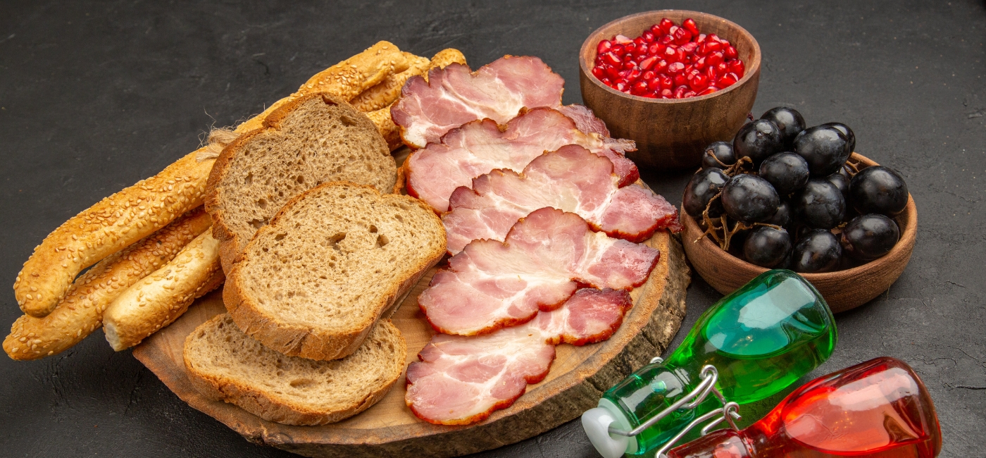 - Színekre is figyelj: a kolbász pirosas árnyalata, a sonka rózsaszín tónusa és a szalonna fehér-vörös csíkozása jól mutatnak együtt.